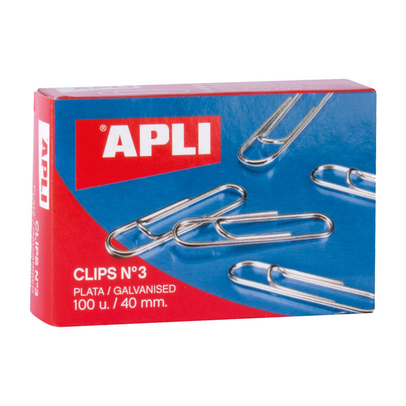 Clips Apli Labiados Plateados Apli Nº3 40mm (Caja de 100 Und)