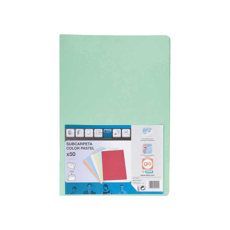 Subcarpeta reciclada GIO BY ELBA Folio Verde pastel Pastel 180 g (Pack 50 und)